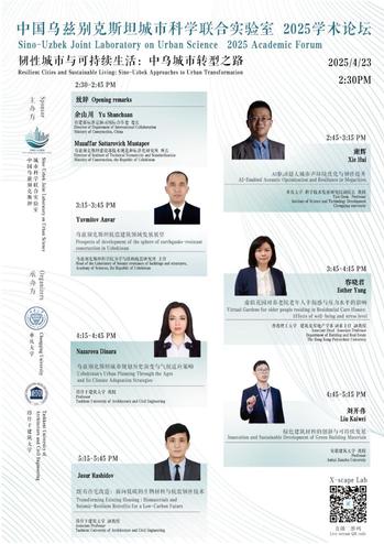 本次论坛是中乌城市科学联合实验室推动“一带一路”科技合作的重要实践,聚焦城市韧性、低碳转型等全球性议题。中国住建部国际合作处处长余山川、乌兹别克斯坦建设部技术规范与标准化研究所所长Muzaffar Sattarovich Mustapov出席开幕式并致辞,强调深化中乌标准对接与技术协同创新对可持续城市发展的战略意义。