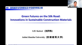 在学术报告环节,我校材料与化学工程学院刘开伟教授以《绿色建筑材料的创新与可持续发展》为题,面向中亚特殊环境挑战,聚焦沙漠砂资源化利用固废再生技术突破高耐久混凝土研发进行交流汇报,提升沙漠砂在建筑材料中的应用性能,破解资源匮乏地区建材短缺难题开发建筑固废与工业固废协同处置工艺,实现低碳建材规模化生产针对中亚温差大、风沙强的气候特点,提出混凝土耐久性提升综合方案,相关技术为“中亚绿色建筑本土化发展提供了直接参考”。