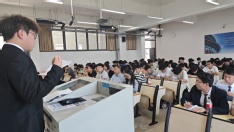 在所有竞聘者演讲结束后,材化学院党委副书记何世明发表致辞。他充分肯定了竞选人在组织建设、活动开展、服务同学等方面取得的优异成绩,对他们为学院发展和学生成长所付出的辛勤努力表示衷心感谢,同时对下一任的学生会主席团成员提出期望。
