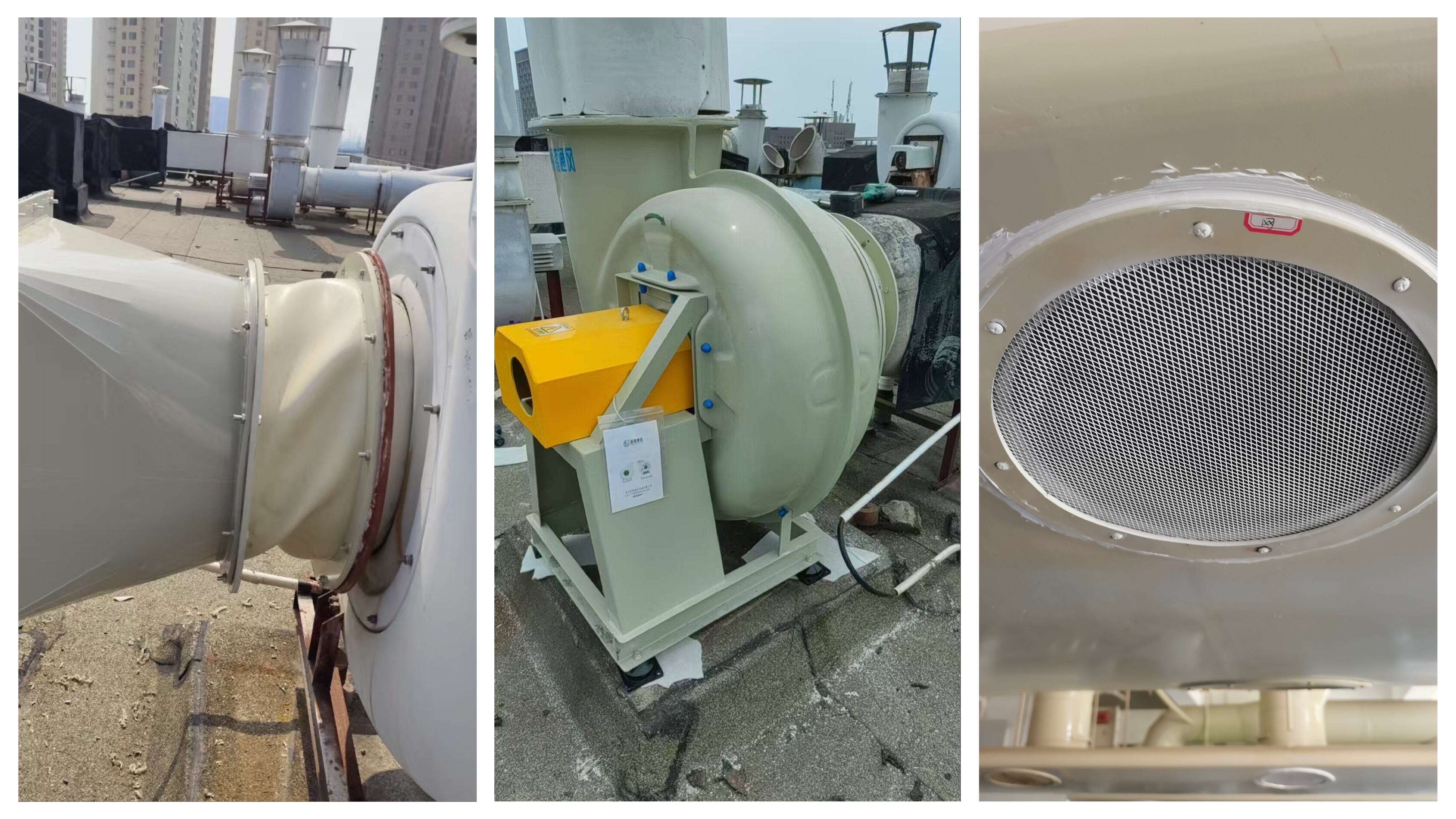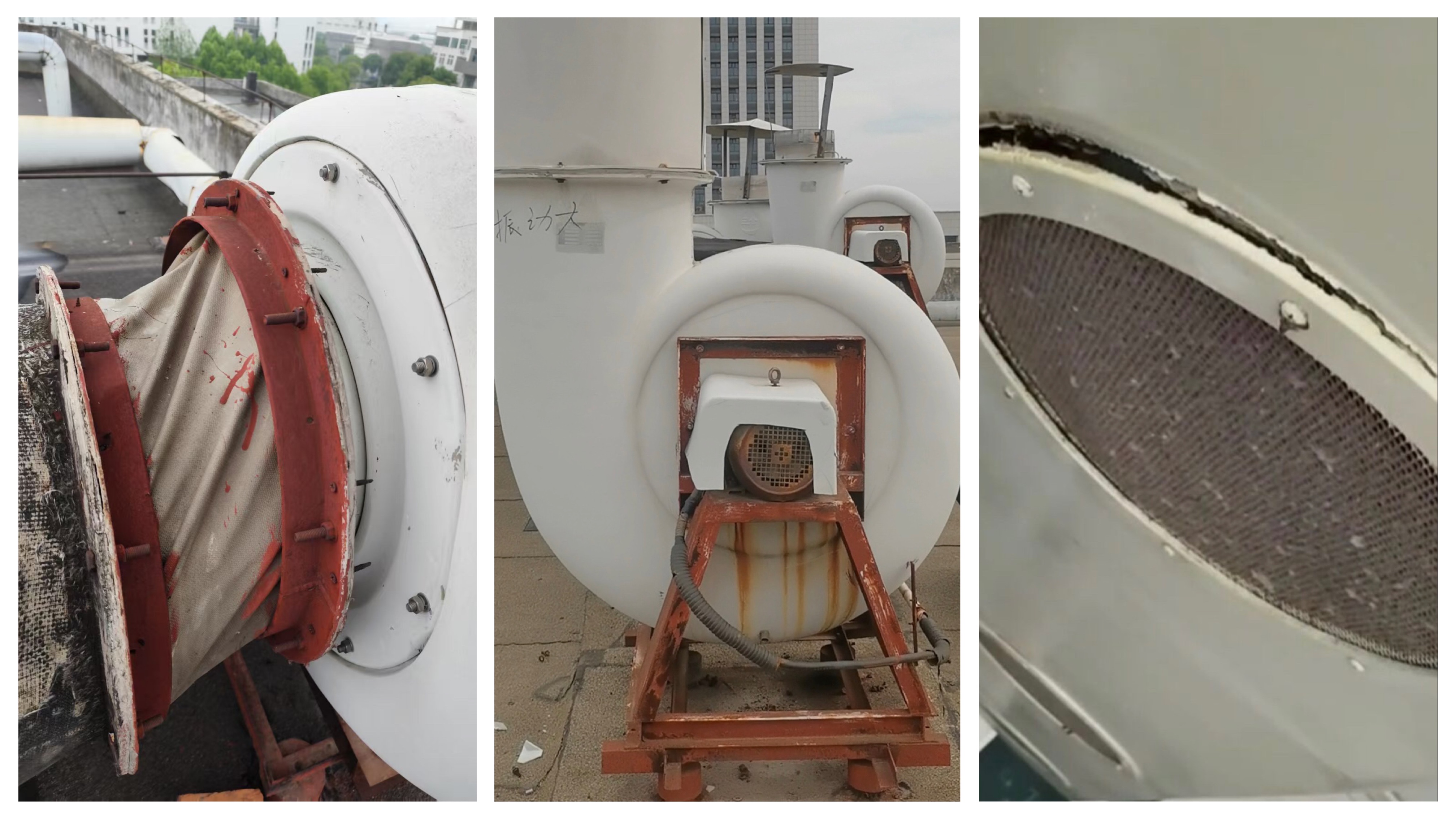 针对排查出的问题,学院迅速组织专题讨论,敲定维修方案,明确三大任务:更换楼顶破损软连接;更换故障风机并对所有风机进行全面保养;彻底清洗8间实验室的通风罩口。