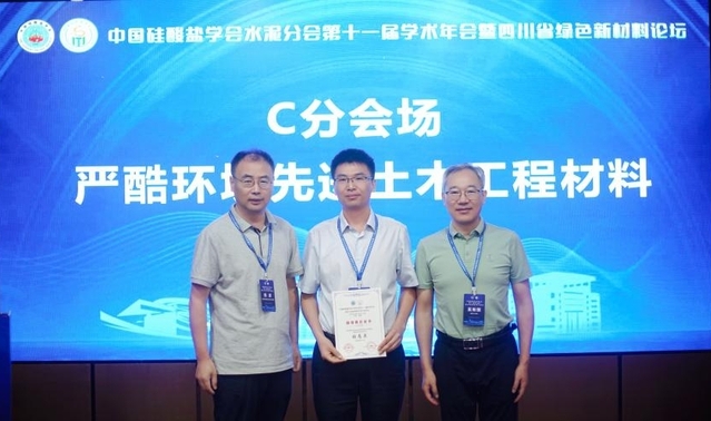 本网讯 2025年8月18日至8月20日,中国硅酸盐学会水泥分会第十一届学术年会暨四川省绿色新材料产业论坛在绵阳成功举办。会议由中国硅酸盐学会水泥分会主办,西南科技大学、四川省绿色建材学院承办。会议围绕“先进胶凝材料”“绿色低碳胶凝材料”“严酷环境先进土木工程材料”“功能与智能建筑材料”等前沿领域,采用邀请与投稿相结合的方式进行专题报告分享,剖析行业发展动态。我院张高展教授受邀参加大会,做了题为“行车荷载对轻质UHPC宏观性能和微观结构的影响”的邀请报告,详细介绍了行车荷载对轻质UHPC力学性能、钢纤维分布、轻集料分布、孔隙结构、界面过渡区等方面的影响,并从胶凝体系组成、功能外加剂调控、温缩型纤维混杂、钢纤维定向分布等方面介绍了轻质UHPC抗扰动性能的调控提升方法及在实际工程中的应用效果。此外,会议还成立了四川省绿色建材学院专家智库委员会,张高展教授受聘为四川省绿色建材学院智库专家。