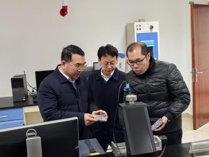 会后,蔡国军一行参观了实验室的科研仪器,与研究人员积极交流。