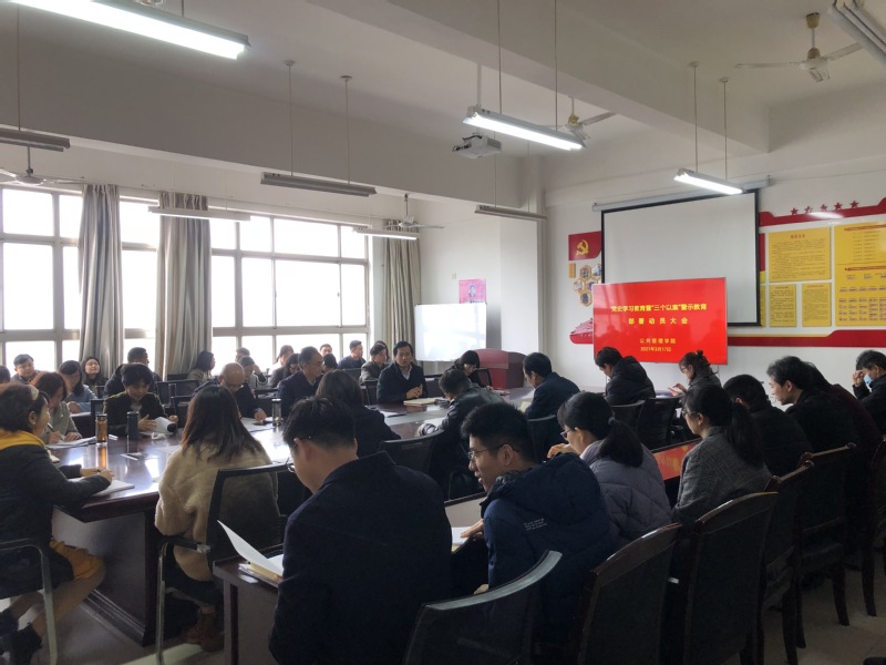 本网讯   学党史、开展党史学习教育,是为传承红色基因、牢记初心使命;正作风、抓好新一轮深化三个以案警示教育,是为推动作风转变,力促全面从严治党纵深发展。317日,公管学院党史学习教育暨新一轮三个以案警示教育部署动员大会在在主教学楼1712会议室举行。公管学院领导班子成员及全体教职工参加了此次会议。会议由院党委书记李道先主持。