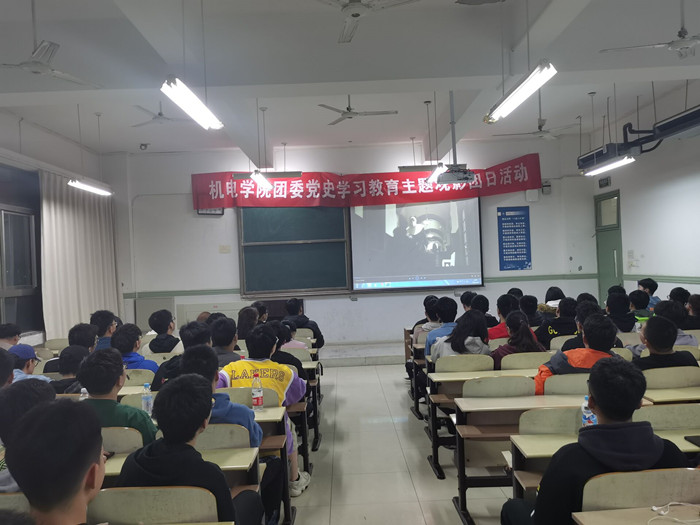 本网讯   为深入开展党史学习教育,贯彻落实习近平新时代中国特色社会主义思想和党的十九大精神,进一步引领广大青年汲取党史营养、传承红色基因。机电学院于3月26日开展“影说党史”主题观影活动,学院入党积极分子及团员骨干参加了活动。