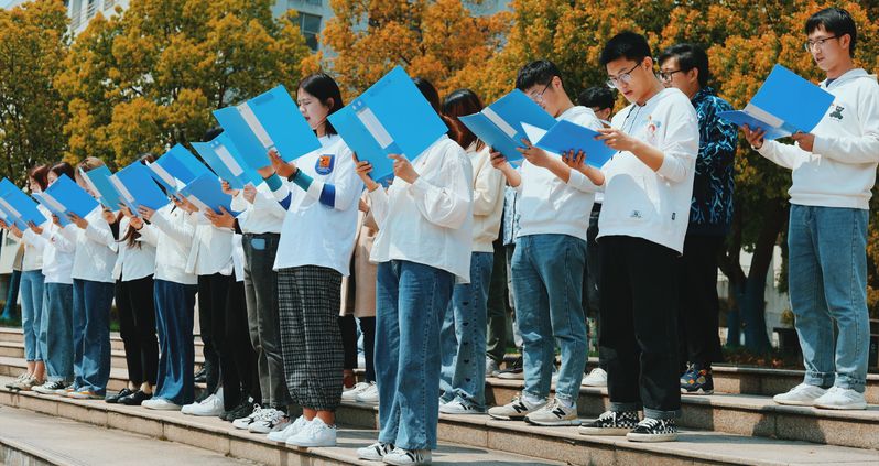 主教楼前,党员们胸戴党徽,手捧党史,一个个精神饱满,神采奕奕,用嘹亮的声音激情诵读,激扬顿挫的诵读声中饱含了新时代青年党员对中国共产党的崇敬之意,对伟大祖国的感恩之情。