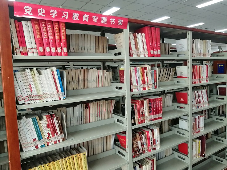本网讯  为贯彻落实学校开展党史教育动员大会精神,图书馆充分利用现有馆藏资源,在南区馆二楼综合阅览室和北区馆书库设置了“学党史专题教育书架,将馆藏红色经典书籍汇总分类,实行专区摆放,便于广大师生深入系统的学习党史。