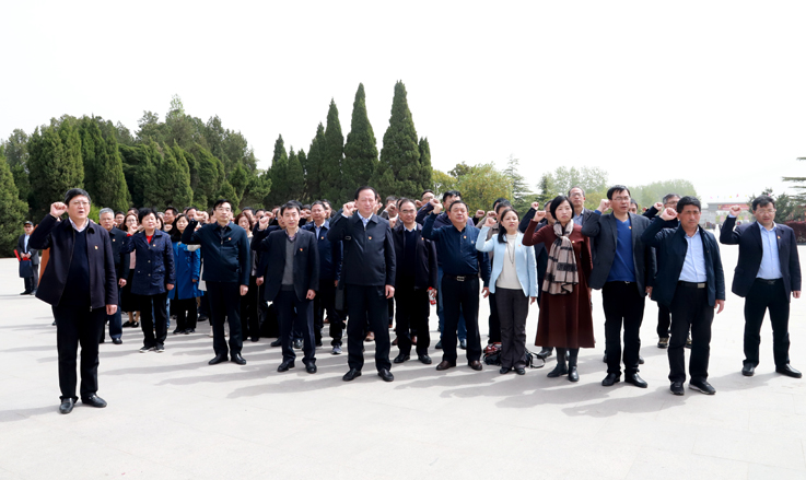 本网讯 为推进党史学习教育走深走实、入心入脑,4月16日上午,学校党委理论学习中心组(扩大)成员来到淮海战役双堆集烈士陵园,开辟党史学习第二课堂,以重温入党誓词、参观革命纪念馆的方式,向革命先烈表达深切缅怀和崇高敬意,在感悟英烈精神中传承红色基因,赓续共产党人精神血脉。