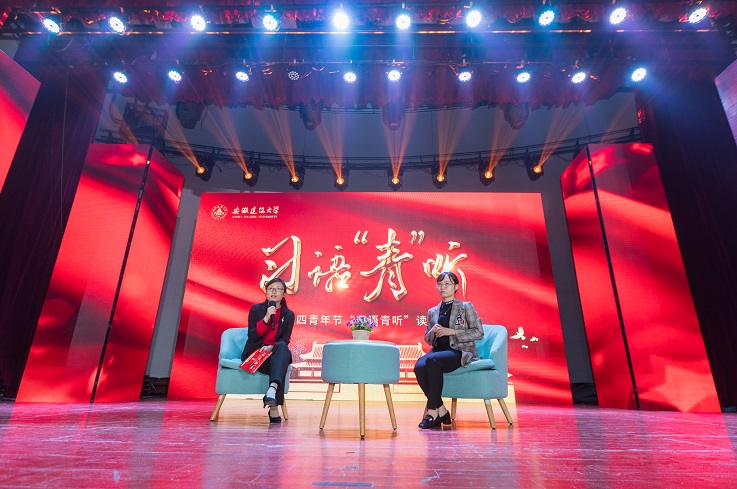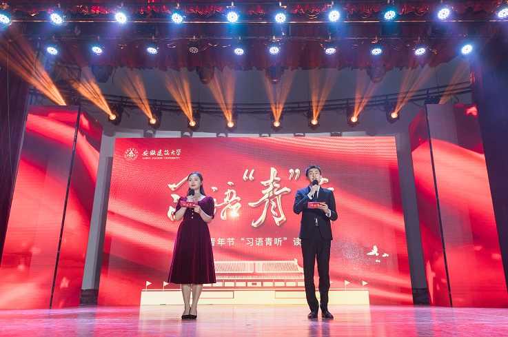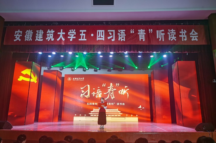 本网讯 百年征程,百年华章。为庆祝建党100周年和五四青年节,深入推进党史学习教育,4月27日晚,学校在大学生活动中心举办习语“青”听读书会,校党委副书记吕萍,安徽省文明办副主任李国兵,安徽省发展和改革委员会科学中心处处长朱的娥,共青团安徽省委学校部部长卢蓉和建大学子一起学习领会习近平总书记那些深入人心的金句,感受总书记的家国情怀。