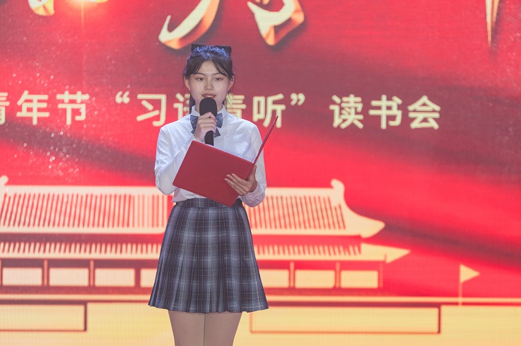 习语近人润心田,活动育人谱新篇。首先,由优秀团干、优秀团支部书记、优秀抗疫志愿者获得者等6名同学诵读习近平总书记经典语录,他们用铿锵有力的声音、激情澎湃的话语阐释对金句的理解和感悟。总书记的好思想、好声音已经翻译成21种语言全世界传播,来自外国语学院的学生会轮值主席李艳同学更为我们带来《习近平谈治国理政》海外版节选语录,青年代表用其深厚的专业功底,加之深情的注入,给现场观众带来一场思想的洗礼。