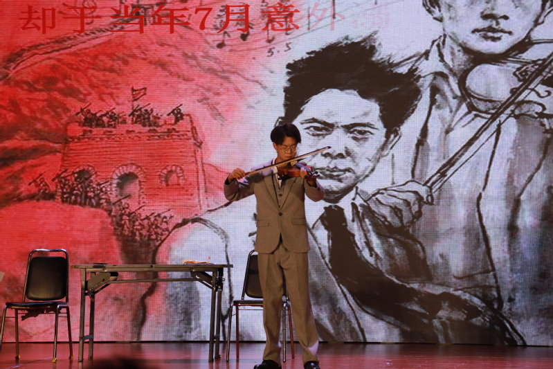 《党旗下》、《船》、《永不消失的声音》、《我用残损的手掌》,依次翻开了党的百年历史画卷,从播下革命火种的小小红船到南昌起义,从祖国成立到改革开放,每一卷都深深打动着全体师生;情景剧《钢铁雄狮之亮剑小组》、《聂耳小提琴》带领同学们重回战火纷飞的年代,看革命先辈们冲锋陷阵,看爱国志士们用自己的力量守护人民、守护党、守护祖国。