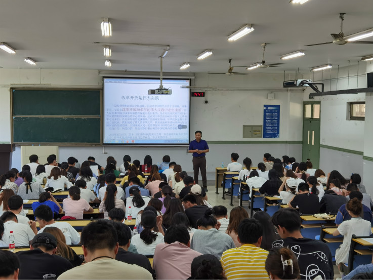 党委学工部部长斯方龙宣讲了改革开放史,他以将改革开放进行到底为题,阐述了改革开放的时代背景八九十年代的艰辛探索及四十年多年来所取得的伟大成就,带领同学们学习了习近平总书记《将改革开放进行到底》重要讲话精神,激励同学们不忘初心、牢记使命,为创造改革开放新的辉煌和实现中华民族伟大复兴而努力奋斗;勉励广大青年学生要自觉加强四史学习教育,弘扬党和人民在各个历史时期形成的伟大精神,在学习中汲取营养和奋进的力量,进一步坚定理想信念、明确人生规划,争做积极向上、勤学善思、务实进取的建大人。