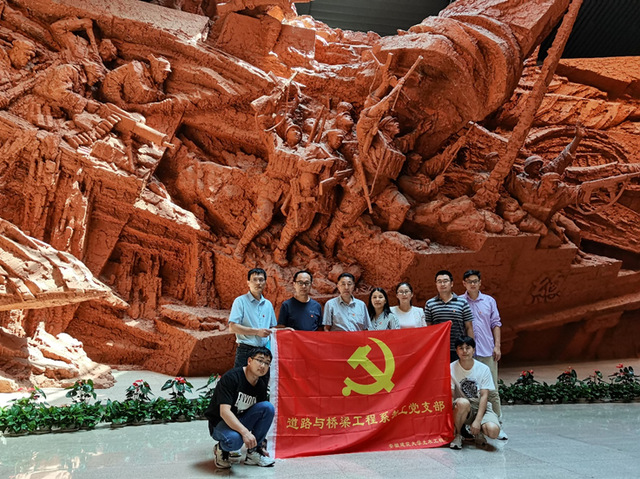 红色建筑镌党史,赓续精神传薪火。道桥系教师党支部前往渡江战役纪念馆,缅怀革命先烈,学习革命精神。在渡江战役纪念馆前的解放广场,全体党员怀着崇敬之情瞻仰了邓小平、刘伯承、陈毅、粟裕、谭震林五位总前委成员塑像,共同缅怀革命先驱的丰功伟绩,并在塑像前合影留念。通过参观战前形势、战役准备、突破江防、战役胜利、人民支前、英烈业绩等六个展厅,全体党员深刻感受到中国共产党领导中国人民取得胜利的坚定信念以及革命先烈不怕牺牲、无私无畏的英雄气概。