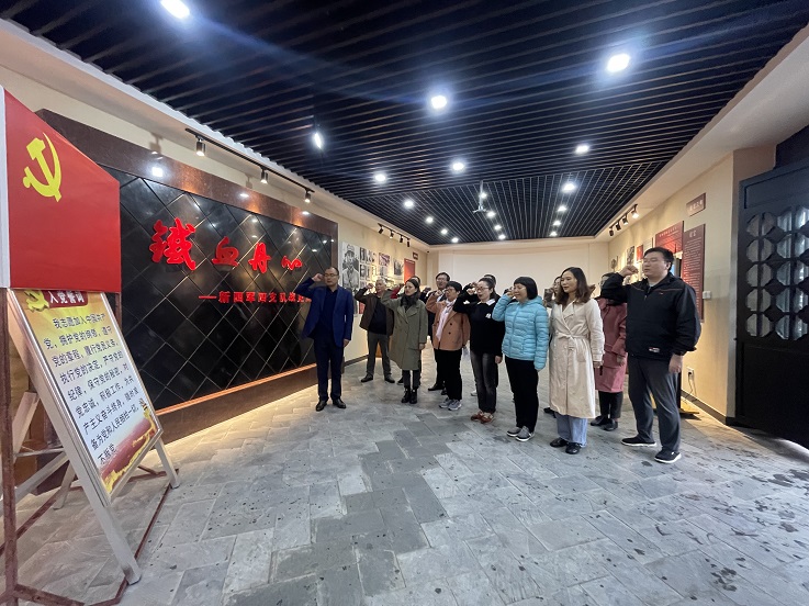 学院教职工党员一行先后参观了新四军四支队纪念碑及支队纪念会馆。党员们一边聆听讲解员的详细解说,一边驻足观看图片及遗物等珍贵史料。透过一张张发黄的历史照片,一件件珍贵的革命文物,同志们深刻地感悟了当年革命先辈们艰苦卓绝的峥嵘岁月,以及革命先烈敢于奉献、勇于牺牲的英雄气概,同时更加坚定了共产党人的理想信念。参观结束之后,党员们一起在党旗前重温了入党誓词。