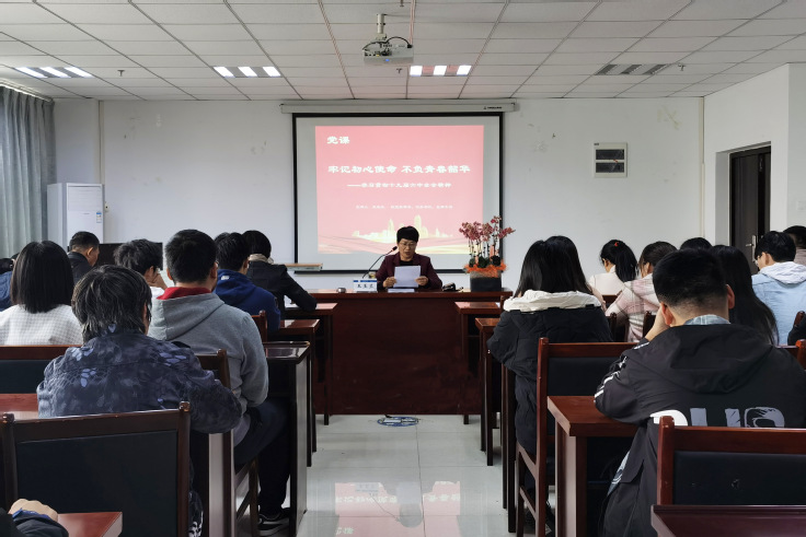 本网讯  11月17日,校纪委书记、监察专员王玉兰深入数理学院,为学院师生讲授题为“牢记初心使命,不负青春韶华”的专题党课,教师党员代表、学生党员、入党积极分子聆听党课。