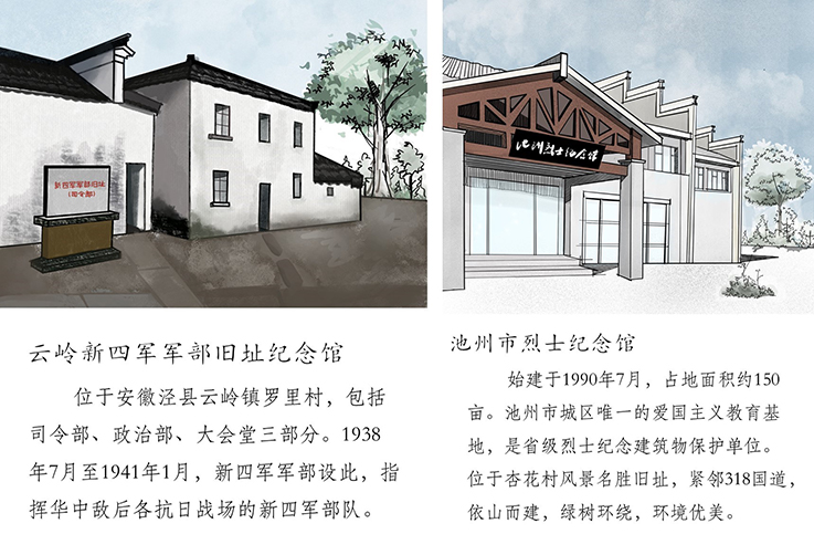 《安徽省红色教育基地图鉴》分为安徽省总图与地区图鉴、制作花絮三个部分,以泛黄的宣纸为底,用手绘建筑点缀,一个个红色印章印刻下中国共产党在安徽省留下的一串串足迹。广大青年党员约一场别样的红色之旅,让更多的红色景点,成为人们聆听红色故事、致敬英雄模范的“打卡地”。