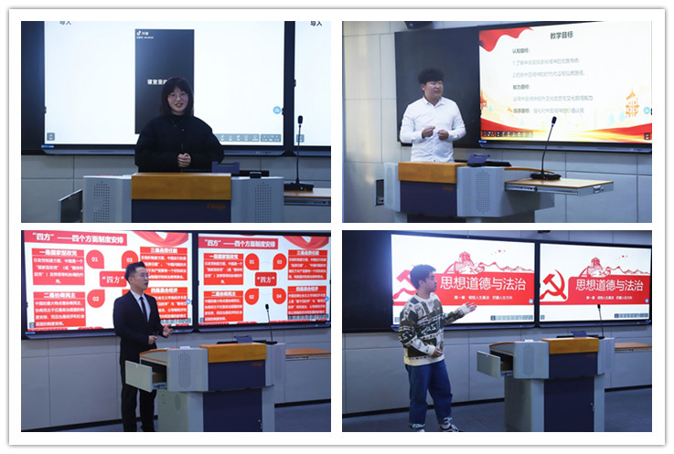 决赛中,8位同学以拒绝内卷”、“思想的铁幕——西方文化霸权主义中国模式——文明型国家的崛起”、“中国精神的时代内涵和弘扬途径”、“传承红色基因,赓续红色血脉”、“诚信在当代的意义”、“领悟人生真谛,把握人生方向”、“国乃一生所爱等为主题,进行了形式多样的现场教学展示。各参赛选手全情投入,将饱满的热情、振奋的精神、铿锵的语言融入有趣的讲课展示之中,赢得了在场评委和观众阵阵热烈掌声。