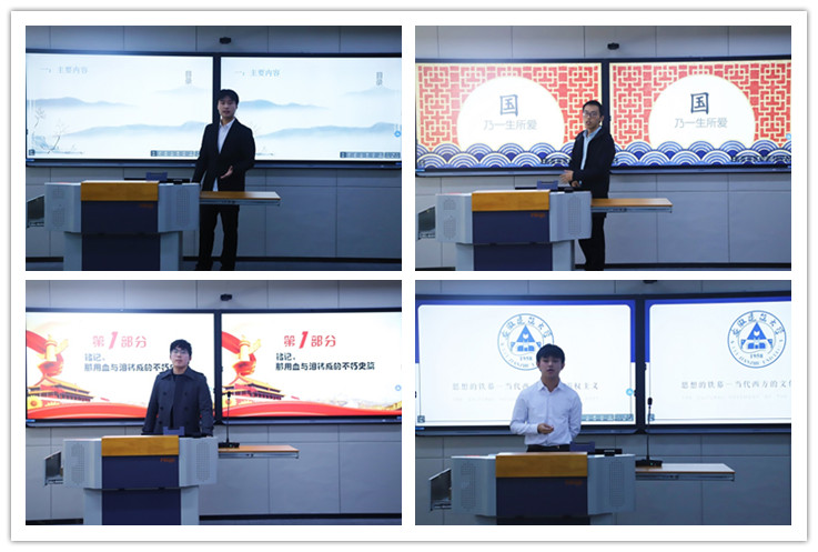 “大学生讲思政课”公开课比赛活动自本学期初启动,结合思政政治教育实践课开展。授课教师指导学生围绕马克思主义基本原理概论、毛泽东思想和中国特色社会主义理论体系概论、中国近现代史纲要、思想道德修养与法律基础等4门理论课的教学内容及相关热点问题,自主选题、自主组队,经班级初赛、马克思主义学院复赛的方式层层选拔,8位同学脱颖而出,进入学校决赛。