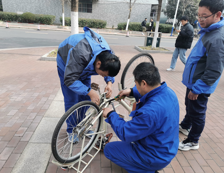 本次爱心服务日依然设置了衣物缝补、熨烫、自行车修补等热门项目,还未到活动开始时间,就有同学们三三两两带着需要缝补的衣物来找阿姨,阿姨们分工得当,有的缝补,有的熨烫,不一会一件件衣服就补好了。维修师傅们一丝不苟地修理着同学们的自行车,补胎、打气、上链条,动作行云流水。
