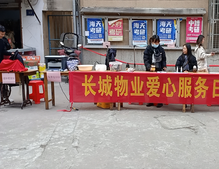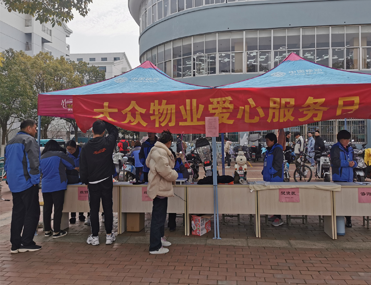 本网讯  为打造优质服务品牌,争创一流服务业绩,尽情彰显宿舍管理人员对学子们真挚的关心、爱护和贴心服务。12月8日,公寓中心联合南校区大众物业和北校区长城物业开展“爱心服务日”活动,为同学们提供“家门口”的便捷服务,解决生活中遇到的困难。为了扩大活动影响力,活动前期利用微信平台、在公寓张贴通知等方式进行广泛宣传。
