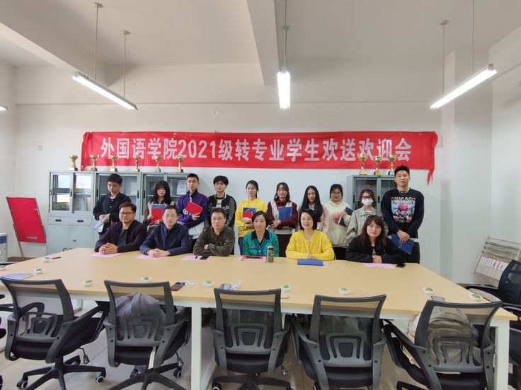 45日中午,外国语学院在主教楼1714会议室举办2021级转专业学生欢送欢迎学院党政领导、学工办主任、2021级辅导员以及转专业学生参加了活动。外国语学院2021级学生转出3人,转入9人,学院高度重视转专业学生后勤保障、学业指导、发展规划等工作,在宿舍安排、搬迁协调、选课指导等工作方面做好了充足的准备和专门的方案。