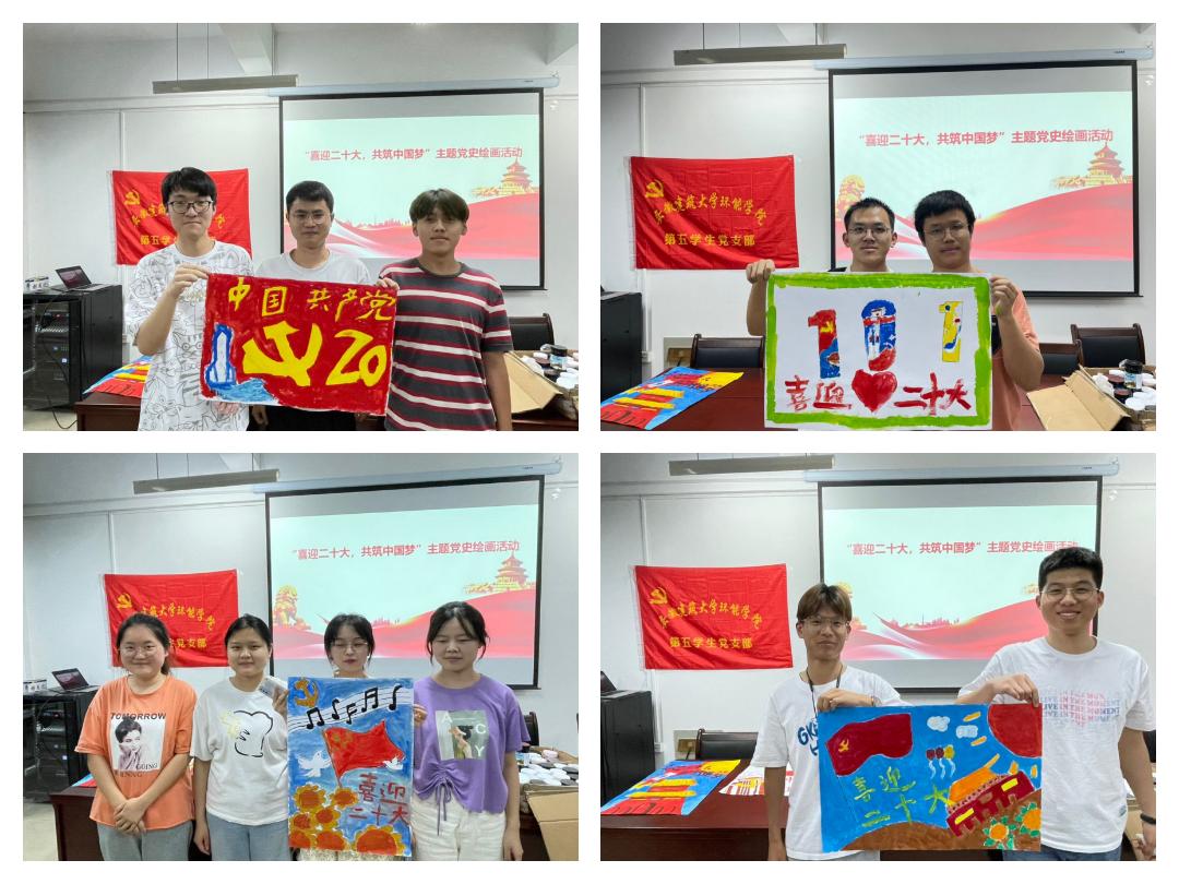 本网讯 为深入开展党史学习教育,迎接党的二十大胜利召开,进一步激发学生的爱党、爱国、爱校热情,5月23日下午,环能学院第五学生党支部组织全体党员在学院211会议室开展“喜迎二十大,共筑中国梦”主题党史绘画活动。