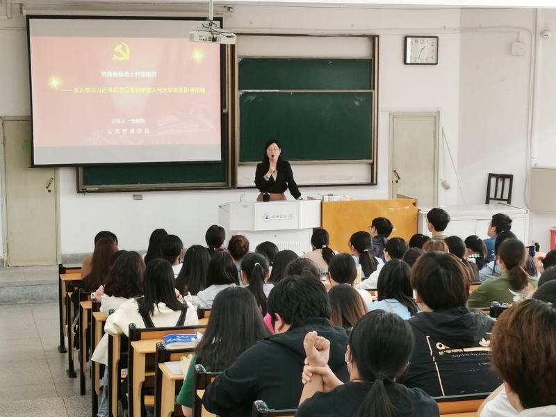 牢记入党初心,践行党员使命。学院党委书记李道先围绕党的基本性质、宗旨,教育引导学生了解中国共产党的精神内涵,端正入党动机;副书记马晓艳带领学生深入学习习近平总书记考察中国人民大学重要讲话精神,激励学生争做青春赛道上的领跑者,坚定为党的事业奋斗终生的信念和决心。