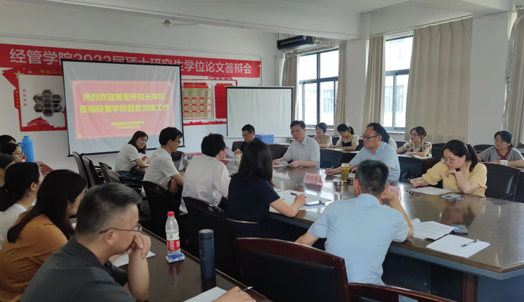 6月27日,校党委副书记、校长黄显怀率学校党建工作领导小组成员深入经管学院开展基层党组织党建工作实地检查督查。学院领导班子成员、党委委员、党支部书记、组织员、办公室主任参加座谈。