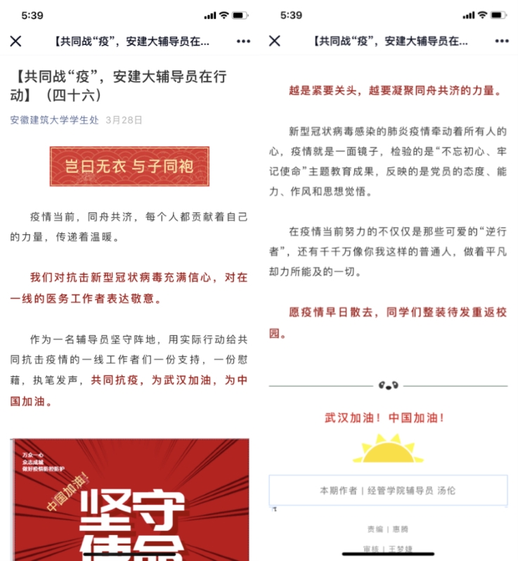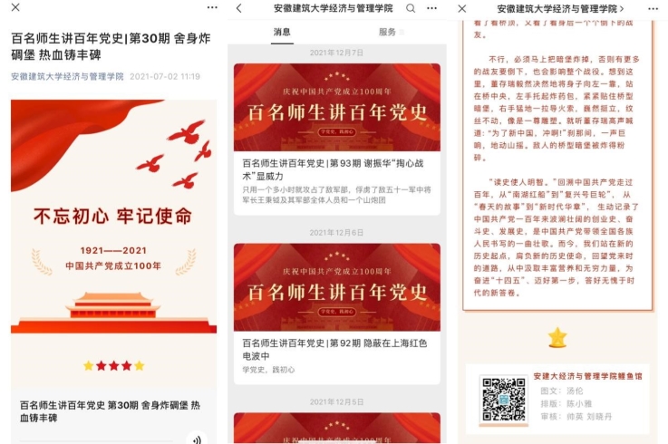 党支部秉持“面向师生,服务师生”的宗旨,加强党建宣传阵地的建设,营造浓厚的党建文化氛围。通过定时间、定内容、定期交流、定期评价的“四定”方式,以“学习强国APP”为载体,着力推进学习型党组织建设;建立支部学习月例会制度,谈认识、谈体会、谈践行;积极开展参观红色基地、观看系列教育片、疫情志愿服务、师生讲党史故事等“主题党日”活动等。以润物细无声的方式,加强师生党员教育引导,一是依托“学习强国”“人民日报”等主流APP资源,挖掘抗疫一线感人故事,开展线上“主题党日”活动。二是通过公众号、微博资讯、官媒官网等信息平台,推送原创《岂曰无衣 与子同袍》、《与爱 与暖与希望》、《谣言与真相的边界》等推文,强化舆论引导的“时、度、效”,牢牢把握意识形态工作的话语权。