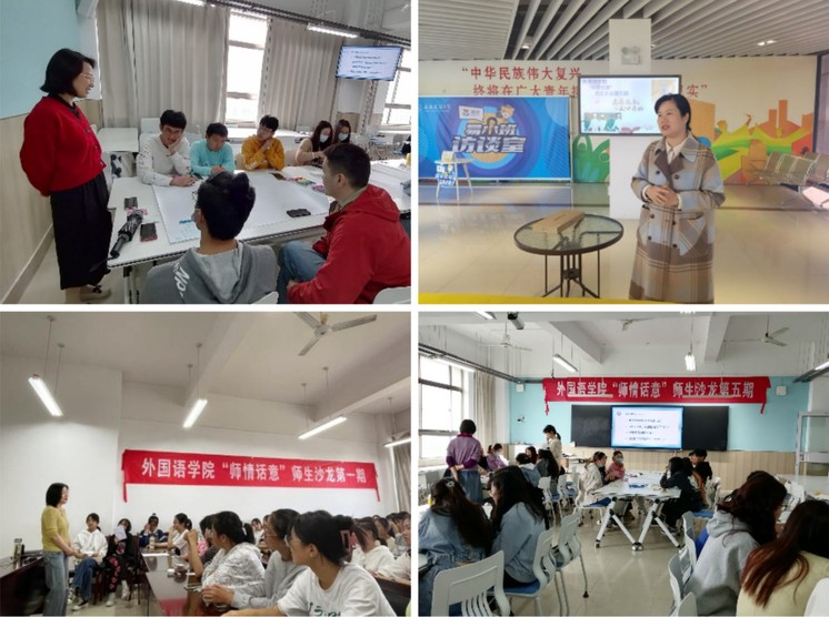 打造特色品牌,发挥示范作用。党支部始终坚持立德树人根本任务,注重学生全面发展,多举措创新“谈心谈话”机制,打造“师情话意”新平台,相继邀请获“中国好人”、安徽省“三八红旗手”、优秀“青年志愿者”等荣誉称号的优秀共产党员们每月定期与学生们面对面沟通、近距离交流,为心理赋能,为成长助力;坚持依托专业优势,党支部持续开展外国语学院“跨文化交际能力大赛”活动,支部党员紧密围绕创新创业、科学研究等方面与班级学生“结对”参赛,充分发挥党员榜样示范作用,营造良好学习氛围;注重示范引领,发挥模范作用,每季度定期邀请优秀党员为入党积极分子座谈交流,用身边的人和事教育引导身边的人。