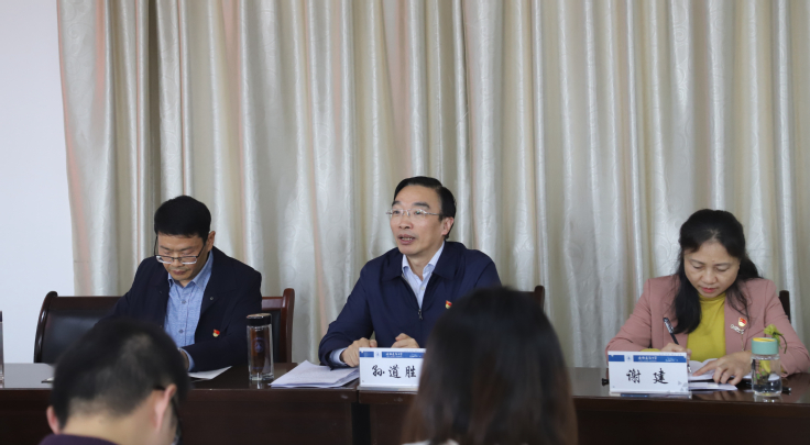 本网讯 为深入学习宣传贯彻党的二十大精神,把大会的新观点、新提法、新论断全面准确融入到思政课堂教学中,11月9日,校党委书记孙道胜带头深入马克思主义学院,向全体思政课教师宣讲党的二十大精神,并交流研讨二十大精神“三进”工作。他强调,要把深入学习宣传贯彻党的二十大精神作为当前和今后一个时期首要政治任务,积极推进党的二十大精神“三进”,以实实在在的成效把党的二十大精神贯彻落实到位。