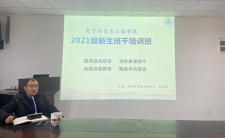 本网讯 为切实提高新生学生干部的工作能力,加强与新生班干的交流沟通,12月29日电信学院于实验综合楼1106教室举办2021级新生学生干部培训班,培训会学院党委副书记孙长城主持。