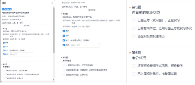 学院通过今日校园发布信息收集和辅导员逐一摸排等方式,双管齐下,对2018级同学考研情况、就业意向等信息进行摸底统计,全面掌握学生的考研、就业动向,有针对性的开展就业指导工作。