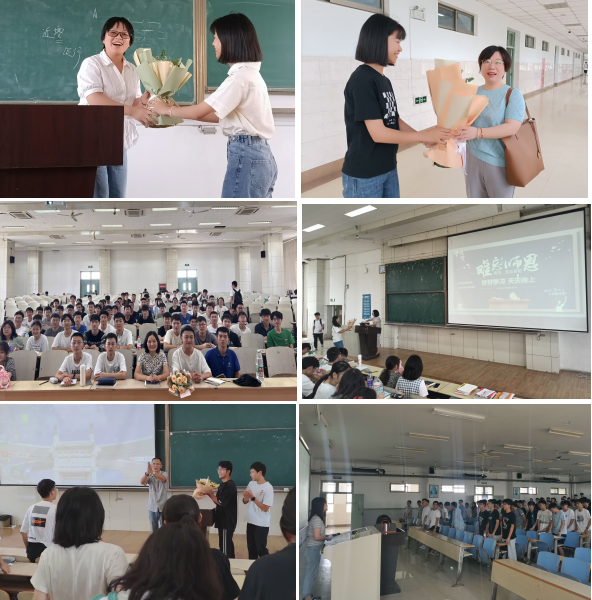 95日周一早晨,伴随着清脆的上课铃声,课堂上全体同学主动起立,向任课老师们整齐问好,道一声“老师,您辛苦了!”学生代表上台为老师们送上鲜花和卡片等小礼品,感恩老师们的辛勤付出。由此,电子与信息工程学院为期一周的教师节系列活动也顺利拉开了帷幕。