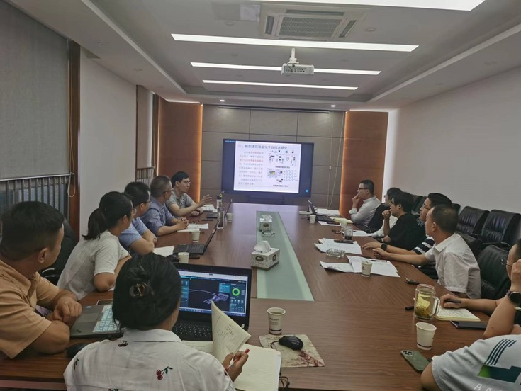 安徽三建工程有限公司副总工程师陈雷首先介绍了公司主营业务,近两年来在大型土木工程中的建筑新型信息技术方法与应用,以及针对国家碳中和碳达峰战略的响应举措。团队对智能建筑与建筑节能安徽省重点实验室平台情况、主要研究方向、成果推广等进行了汇报。双方就建筑新型信息技术在绿色建筑、低碳建筑中的应用进行了深入交流。