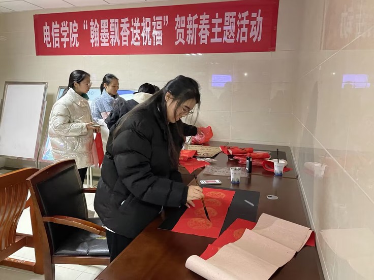 电信学院举办“翰墨飘香送祝福”贺新春主题活动