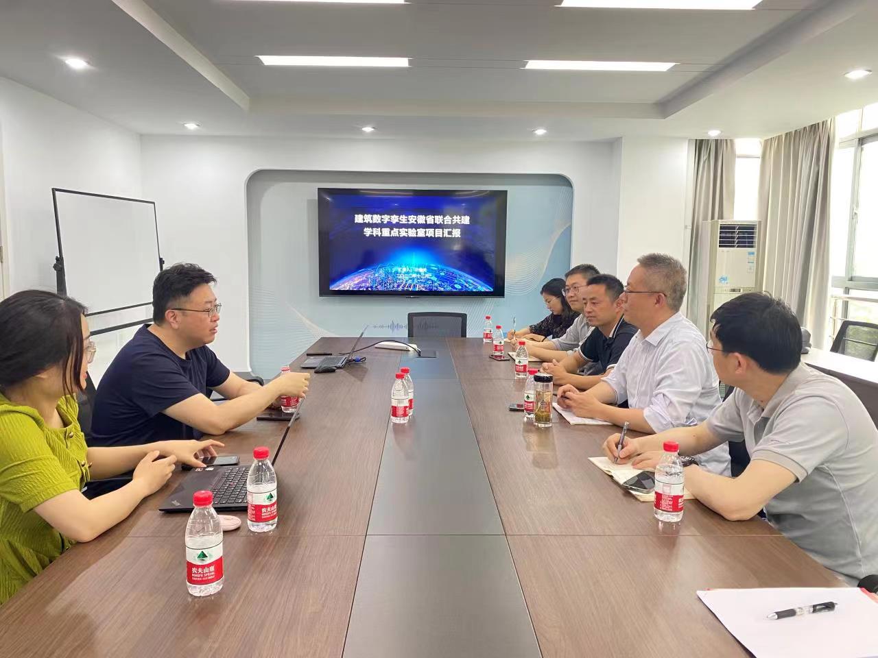 学院副院长杨亚龙介绍了近年来电信学院在学科专业建设、人才队伍建设、科学研究等方面取得的成果。双方就2022年已入选首批安徽省联合共建学科重点实验室培育名单的建筑数字孪生安徽省联合共建学科重点实验室认定工作、学生实习实训、科研项目申报、产学研合作等方面进行了沟通交流,并希望通过此次访企拓岗专项行动,对接企业用人需求,加强校企合作。