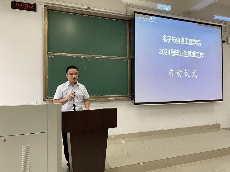 本网讯 9月20日,电信学院2024届毕业生就业工作启动仪式在逸夫楼5102顺利举行。学院党委书记孙长城、党委副书记丁媛媛、毕业班辅导员、2024届部分毕业生及用人单位代表参加了启动仪式,仪式由丁媛媛主持。