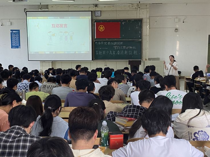 最后,学院党委副书记丁媛媛结合新时代背景,从同学们的生活实际出发,旨在解答青年学子如何成长成才的疑问,希望同学们能够做一个心有目标、勇于实践、乐观开朗的人。丁媛媛老师通过视频展示与课堂互动带领同学们展开思考,别具一格的讲课形式吸引了同学们积极互动,引发了同学们的深思。同时,丁媛媛老师也强调了做好生涯规划的重要性,强调青年学子们应当实干笃行,以奋斗开启未来。