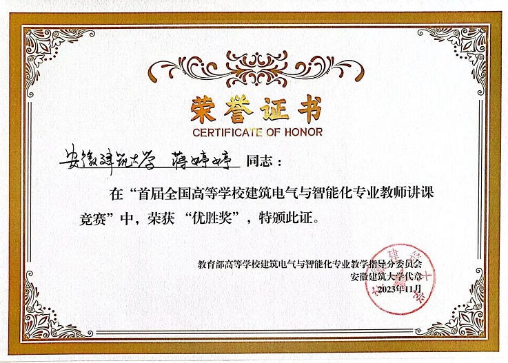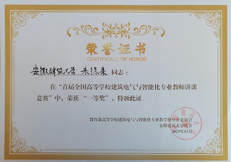 本网讯 2023年11月18日-19日,首届全国高等学校建筑电气与智能化专业教师讲课竞赛在河南平顶山顺利举行,我校电信学院推选了两名教师参加了比赛,朱徐来老师荣获一等奖,蒋婷婷老师荣获优胜奖。