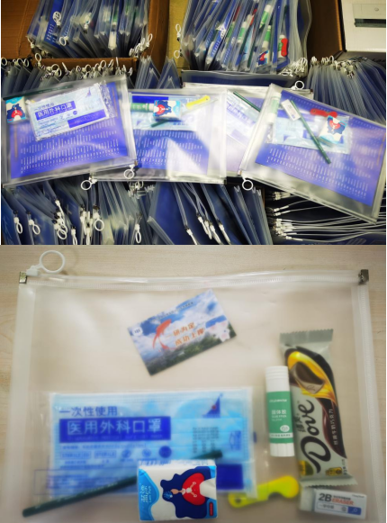 学院精心准备的充满寓意的考研礼包中每份礼物都代表了期盼与祝愿,一份实用的文具套装祝愿考研学子在考场泼墨挥洒,下笔如有神助,描绘锦绣前程;一袋手帕纸——“纸”定有你;一副口罩,在保障健康卫生的同时也象征着--福星高“罩”;一盒德芙巧克力,愿考研同学克服研途困难,动力满满,坚定不移奔向梦想;一张祝福考研学子“信”心百倍的明信片由老师和学弟学妹们共同写就,携众人期盼,祝福考研学子圆梦而归。