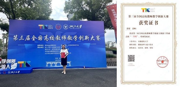 2023年,5名教师获得工信部“FPGA应用开发工程师(高级)”认证。学院荣获第三届高校教师教学创新大赛全国二等奖1项,安徽省一等奖1项;第八届全国计算机类课程实验教学案例设计竞赛全国二等奖1项、安徽省第六届青教赛三等奖1项、首届全国高等学校建筑电气与智能化专业教师讲课竞赛一等奖1项、第八届全国计算机类课程实验教学案例设计竞赛二等奖1项;校课程思政教学比赛二等奖4项,三等奖1项;2名教师分别荣获校第二届“东方节能”优秀教学奖二三等奖。