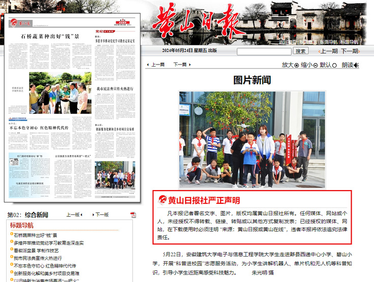 师生团队先后在西递镇中心小学、碧山小学、柯村学校等地开展系列志愿服务,活动得到了当地教育部门及社会各界的广泛关注与支持。志愿者们充分发挥自身专业优势,结合中小学生的兴趣和需求,精心设计了多个互动性强、寓教于乐的科普项目。活动现场,志愿者们通过生动的讲解、有趣的实验、互动问答等形式,向学生们展示了科学的魅力,激发了他们对科学的兴趣和热情。活动效果得到当地政府和学生们的广泛认可。