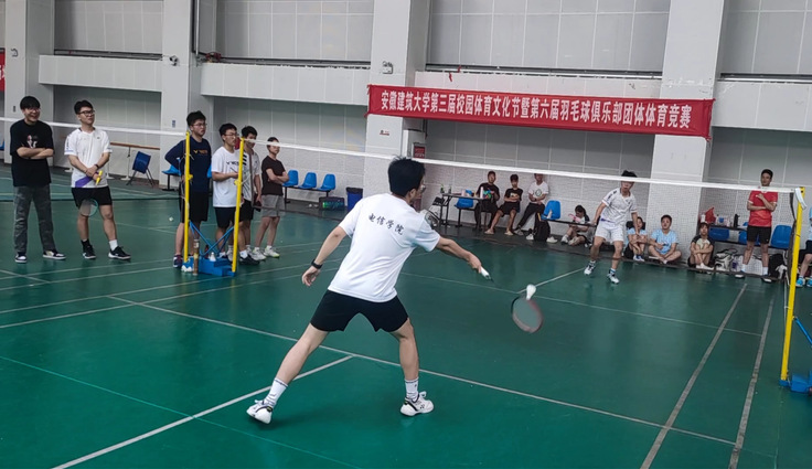 羽毛球比赛同样精彩纷呈,学院选手们在场上展现出高强的技艺和灵活的身姿,每一回合都让人目不转睛。在场观众们亦如置身战场,共同感受比赛的激情与乐趣。最终学院团队获本次羽毛球联赛第一名。