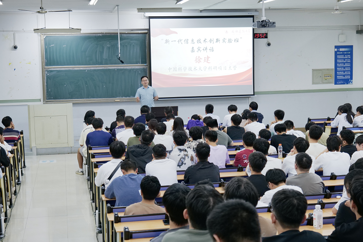 中国科技大学徐建老师表达了对创新实验班设立的认同与支持,他从AI与电子技术的创新发展方面,鼓励学生打牢能力基础,不断创新实践,为科技发展贡献力量。