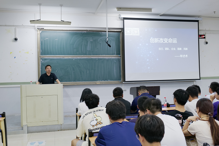 接着,毕才术总经理为大家带来了电子设计创新实验班的“第一课”:创新改变命运。从个人,企业,国家等多角度阐述了坚持创新的必要性;从创新的逻辑、目标、方法等多方面强调了创新的重要性;从基础、方法、平台等多层面介绍了电子设计创新的内容。希望同学们坚持创新,培养创新思维。
