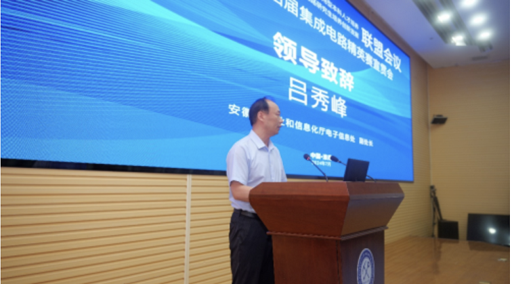省工信厅信息处副处长吕秀峰介绍了安徽省集成电路产业发展状况,以及省政府对集成电路产业的重视,鼓励各高校继续参加安徽省第四届集成电路精英赛,协助产业育人。