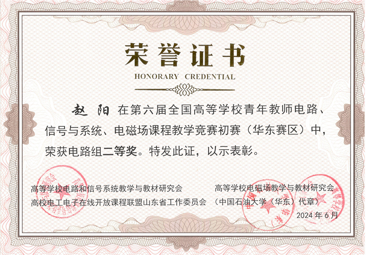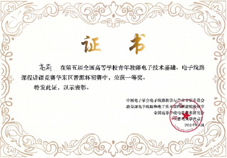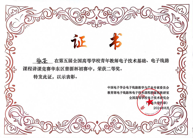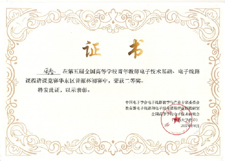 本网讯 2024年6月-8月,全国高等学校青年教师课程讲课竞赛在青岛举行,电信学院教师高莉、徐荃、周春参加第五届全国高等学校青年教师电子技术基础、电子线路课程讲课竞赛华东赛,高莉老师荣获数字电路与逻辑设计组一等奖;徐荃、周春分别荣获模拟电子技术基础组和电子线路高频组二等奖。教师赵阳参加第六届全国高等学校青年教师电路、信号与系统、电磁场与电磁波课程讲课竞赛华东赛,荣获二等奖。