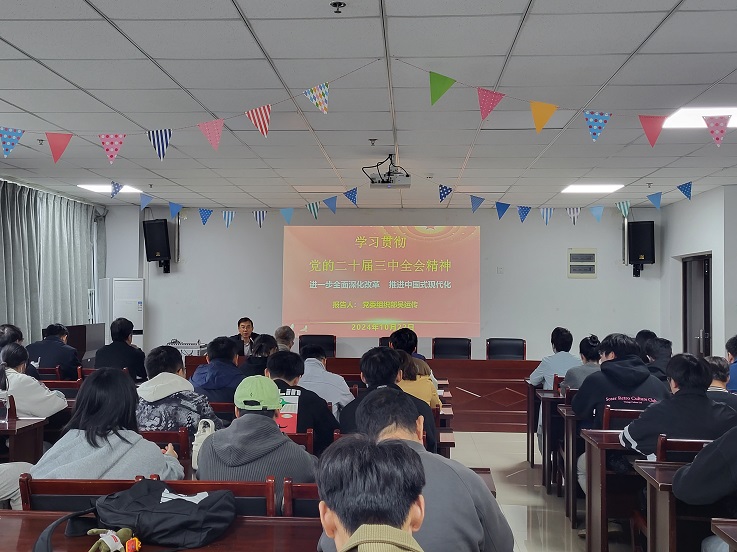 本网讯 根据学院2024年学习贯彻习近平新时代中国特色社会主义思想(党的二十届三中全会精神专题)读书班工作安排,10月22日上午,学院党委在徽风楼1106会议室举办学习贯彻党的二十届三中全会精神专题辅导报告暨党委理论学习中心组第十三次(扩大)学习会。