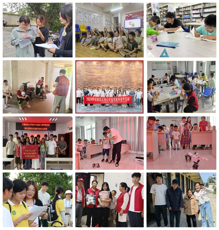 坐而论道,不如起而行之。各学生党支部积极响应学院号召,自觉前往社区报到参加志愿服务,他们帮助社区制作防溺水宣传海报、宣传册,组织开展防溺水安全教育宣讲;他们在壹基金儿童服务站向小朋友们宣传安全教育知识,引导他们做自己的安全小卫士;他们为社区儿童开展机器人知识科普和暑期作业帮扶;他们前往宣城市宣州区洪林镇梓潼阁开展古建筑保护修复考察,结合专业优势,利用新型古建筑损伤检测系统及修缮加固技术的改良与创新,使得受损的古建筑恢复其原有的风貌,助力当地乡村的文化传承和遗产保护。