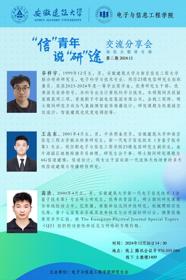“信”青年说:“研途”---电信学院研究生会成功举办榜样引领优秀研究生代表经验交流分享会第二期(南信大联培专场)